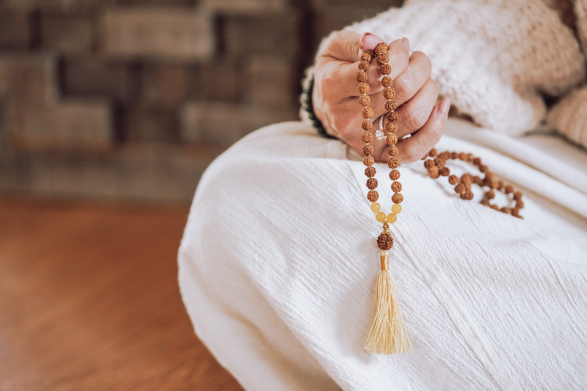 Nurtured on family farms and strung by artisans who weave prayer into every knot. These malas carry the quiet pulse of nature, the memory of touch, and the rhythm of sacred life.